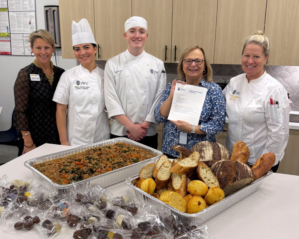 A group of students from Johnson & Wales University’s College of Food Innovation & Technology arrived at Nourish Up, ready to pack boxes of nonperishable food. They were young, bright-eyed, and full of energy—the kind of energy that fills a room with laughter and camaraderie even when the task is humble. That day, they assembled what we call 7-day boxes: a week’s worth of nutritionally balanced meals, designed to bring dignity, health, and hope to those who need it most. Cans of beans, vegetables, tuna, grains, and fruit moved from hand to hand, finding their place in the sturdy cardboard boxes that would soon land in the kitchens of families in Mecklenburg County facing food insecurity.